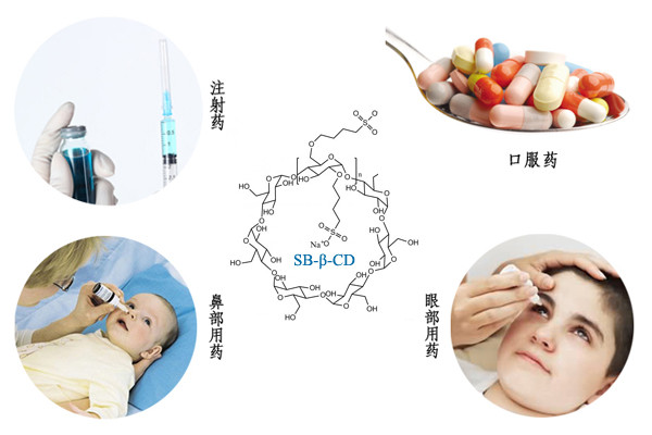 磺丁基-β-環(huán)糊精鈉(SBE-β-CD)是β-CD的衍生物,具有帶負(fù)電荷的側(cè)鏈,對(duì)帶正電荷的藥物具有特殊的作用力,疏水性的藥物被包合后可以改善藥物自身的水溶性,同時(shí)也能夠增加藥物在人體內(nèi)的吸收,提高穩(wěn)定性等。此外,它能很好地與藥物分子包合形成非共價(jià)復(fù)合物,從而提高藥物的安全性,降低腎毒性、緩和藥物溶血性,控制藥物釋放速率,掩蓋不良?xì)馕兜?。SBE-β-CD已適用于注射藥、口服藥、鼻部用藥、眼部用藥,對(duì)于含氮類藥物具有特殊的親和力和包和性。