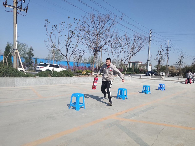 一聲哨響,只見兩名身著工裝的員工手拉推車式滅火器,快速通過重重障礙,冒著前方“滾滾濃煙”,迅速跑向火場(chǎng)……